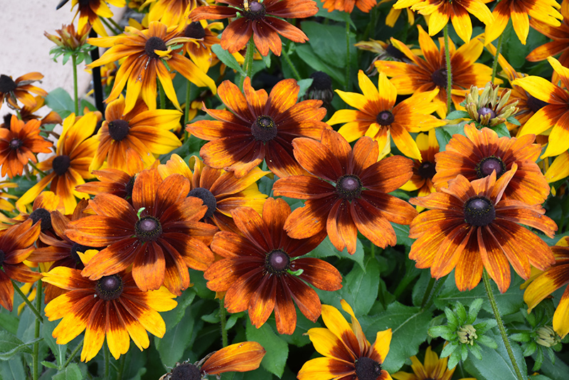 Cappuccino Coneflower has masses of beautiful gold daisy flowers with dark brown eyes and dark red centers at the ends of the stems from mid summer to late fall, which are most effective when planted in groupings. The flowers are excellent for cutting. Its serrated pointy leaves remain green in color throughout the season.