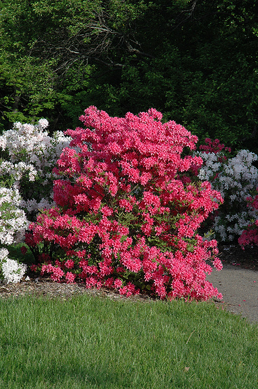 An extremely hardy azalea, smothered in showy fragrant rose-pink flowers in spring before the leaves, tall upright habit and good fall color; absolutely must have well-drained, highly acidic and organic soil, use plenty of peat moss when planting