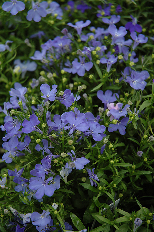 Riviera Sky Blue Lobelia will grow to be only 5 inches tall at maturity, with a spread of 8 inches. When grown in masses or used as a bedding plant, individual plants should be spaced approximately 6 inches apart. Its foliage tends to remain low and dense right to the ground. Although it's not a true annual, this fast-growing plant can be expected to behave as an annual in our climate if left outdoors over the winter, usually needing replacement the following year. As such, gardeners should take into consideration that it will perform differently than it would in its native habitat.