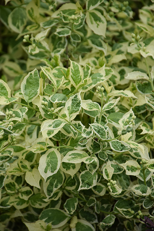 Variegated Mockorange features showy clusters of fragrant white flowers with yellow eyes at the ends of the branches in late spring. It has attractive creamy white-variegated green foliage. The serrated oval leaves are highly ornamental but do not develop any appreciable fall color.