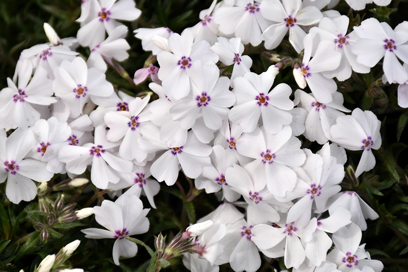 Amazing Grace Moss Phlox is smothered in stunning white star-shaped flowers with gold eyes and a hot pink ring at the ends of the stems from mid to late spring. Its tiny needle-like leaves remain forest green in color throughout the year.