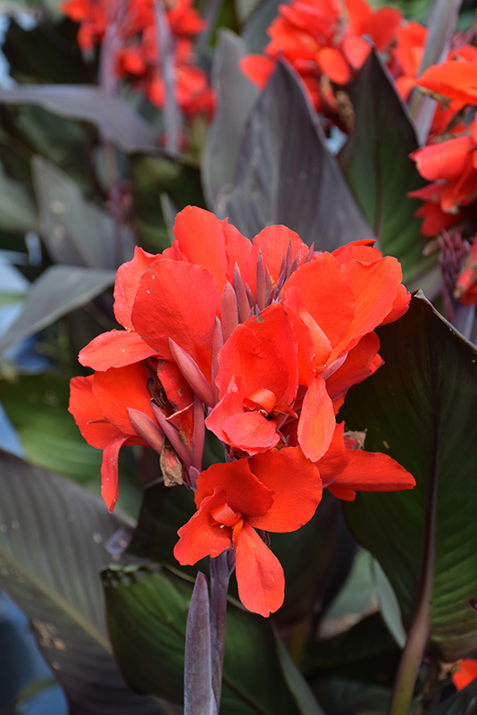 Cannova® Bronze Scarlet Canna is an herbaceous evergreen tropical plant with a rigidly upright and towering form. Its wonderfully bold, coarse texture can be very effective in a balanced garden composition.
