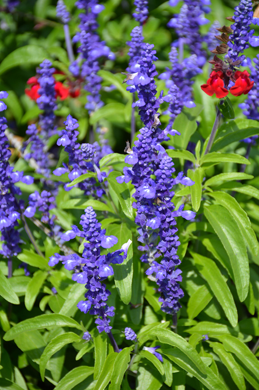 Sallyfun Blue Salvia has masses of beautiful spikes of blue flowers with violet overtones rising above the foliage from early summer to mid fall, which are most effective when planted in groupings. The flowers are excellent for cutting. Its fragrant narrow leaves remain green in color throughout the season.