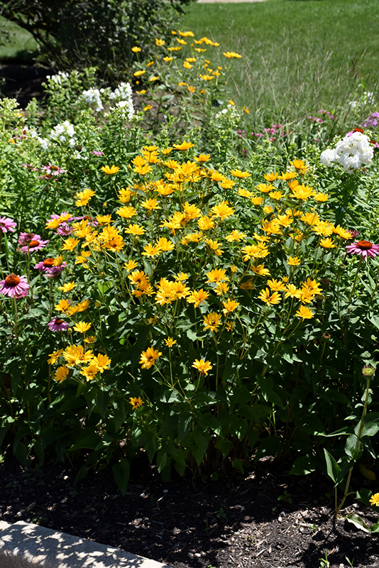 Summer Sun False Sunflower has masses of beautiful semi-double gold daisy flowers at the ends of the stems from early summer to mid fall, which are most effective when planted in groupings. The flowers are excellent for cutting. Its serrated oval leaves remain forest green in color throughout the season.