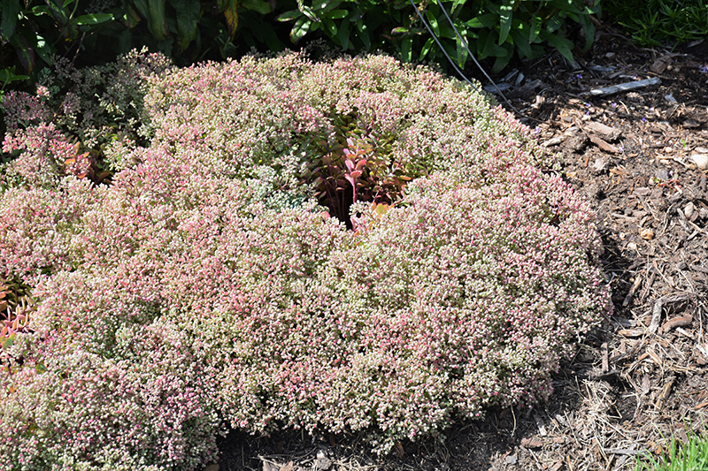 A low mounded stonecrop, featuring clusters of rosy pink flowers held atop distinct silvery blue-green succulent foliage; a drought-tolerant perennial that does best in poor soils; a colorful groundcover or feature in containers or rock gardens