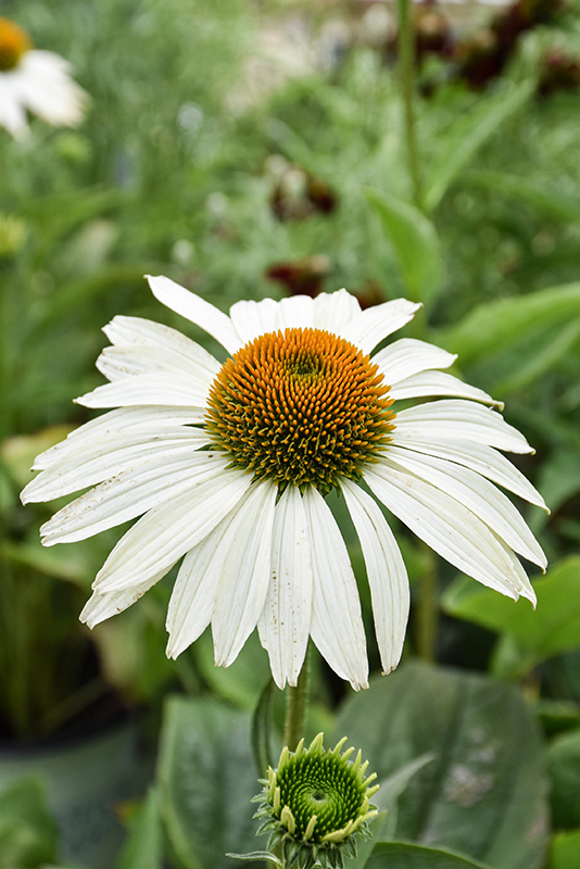 A long flowering variety producing a profusion of creamy white flowers with orange cones from mid-summer to early fall; a vigorous grower with sturdy stems, it really stands out in the late summer garden