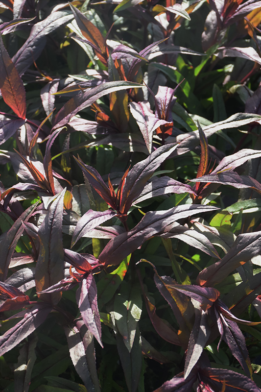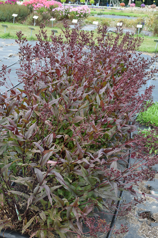 A dramatic variety, with beautiful burgundy emerging foliage that matures to deep green with a burgundy wash; glorious lavender pink blooms in summer contrast the foliage; plants are vigorous and very drought tolerant