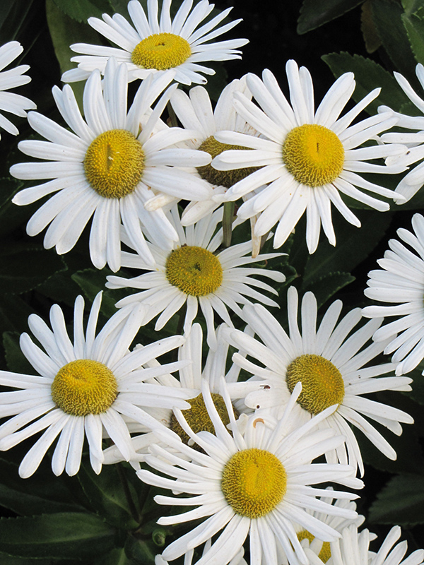 An outstanding shrubby perennial, producing large white daisy blooms with greenish-gold center disks, rising on long stalks; a beautiful addition to the garden when massed; after blooming in mid-summer, cut back for a great fall display