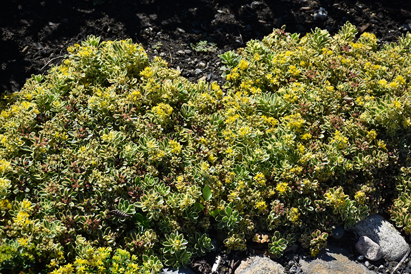 A low, groundcover stonecrop with beautiful green and cream variegation; yellow flowers in early summer are an added bonus; a drought-tolerant perennial that does best in poor soils, and an excellent choice for summer color in the garden
