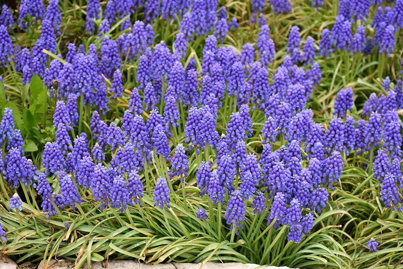 Grape Hyacinth has masses of beautiful spikes of blue bell-shaped flowers rising above the foliage in mid spring, which are most effective when planted in groupings. Its grassy leaves remain green in color throughout the season.