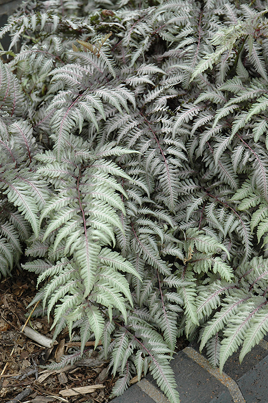 Pewter Lace Painted Fern is primarily valued in the garden for its cascading habit of growth. Its attractive ferny bipinnately compound leaves emerge burgundy in spring, turning grayish green in color with showy silver variegation throughout the season. The burgundy stems are very colorful and add to the overall interest of the plant.