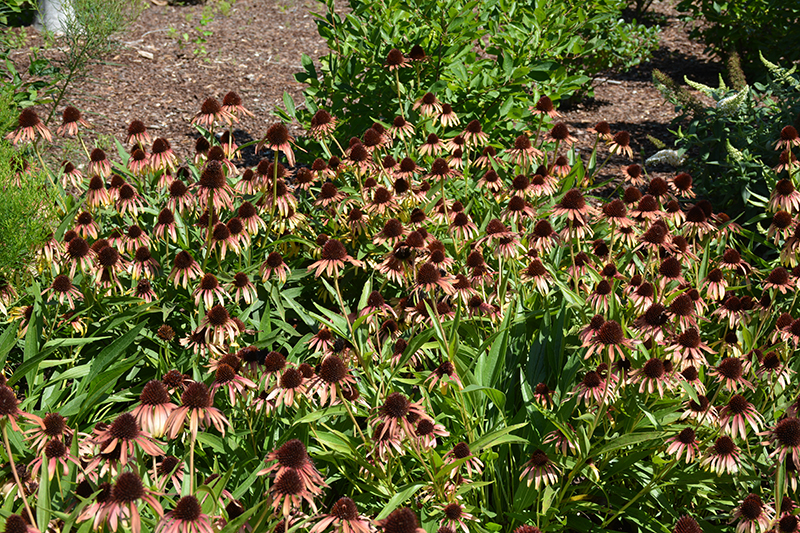 Fiery Meadow Mama Coneflower will grow to be about 20 inches tall at maturity extending to 28 inches tall with the flowers, with a spread of 24 inches. It grows at a medium rate, and under ideal conditions can be expected to live for approximately 10 years. As an herbaceous perennial, this plant will usually die back to the crown each winter, and will regrow from the base each spring. Be careful not to disturb the crown in late winter when it may not be readily seen!