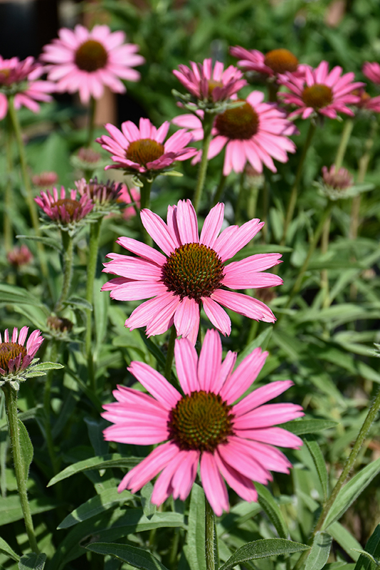 Pixie Meadowbrite™ Coneflower has masses of beautiful lightly-scented hot pink daisy flowers with burgundy eyes at the ends of the stems from mid summer to mid fall, which are most effective when planted in groupings. The flowers are excellent for cutting. Its pointy leaves remain green in color throughout the season.
