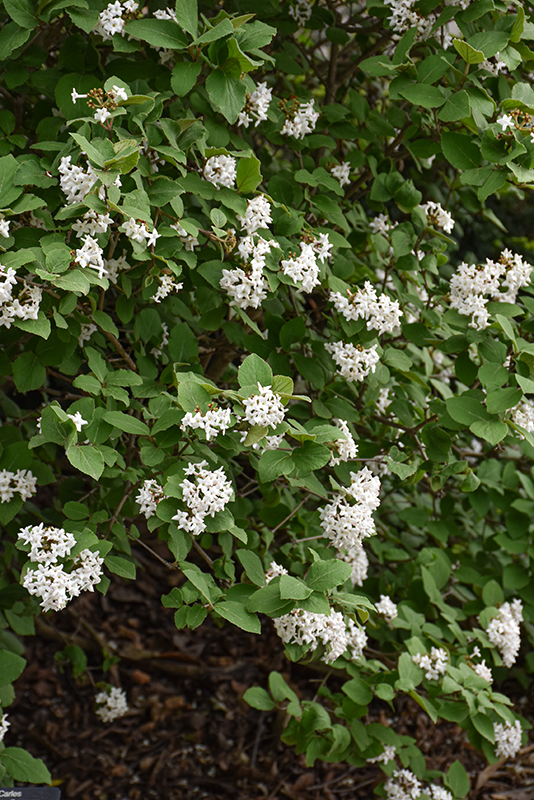 Sugar n' Spice™ Koreanspice Viburnum is smothered in stunning balls of fragrant white flowers with shell pink overtones at the ends of the branches in mid spring, which emerge from distinctive pink flower buds. It has green deciduous foliage. The heart-shaped leaves turn outstanding shades of red and burgundy in the fall. The black fruits are held in clusters from late summer to late fall.