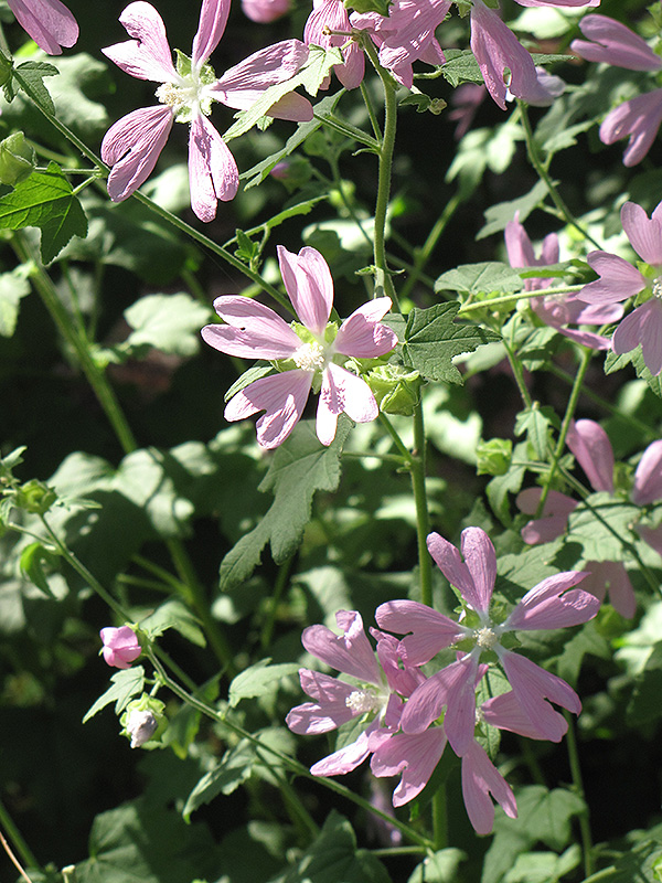 Tree Mallow is an herbaceous perennial with a rigidly upright and towering form. Its relatively coarse texture can be used to stand it apart from other garden plants with finer foliage.