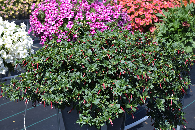 Small, freely branching shrub or subshrub with dainty red tubular flowers that open to a star shape; flowers year round in warmer climates; great for bedding, shrub borders, and containers