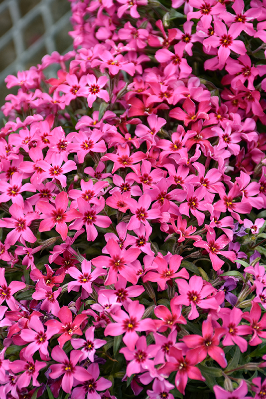 Red Wings Moss Phlox is smothered in stunning lightly-scented crimson star-shaped flowers with dark red eyes at the ends of the stems from early to late spring. Its tiny needle-like leaves remain green in color throughout the year.