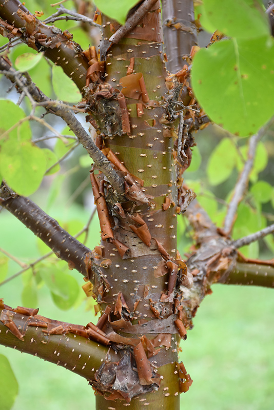 China Snow Pekin Lilac features showy plumes of fragrant creamy white flowers rising above the foliage from late spring to early summer. It has dark green deciduous foliage. The pointy leaves do not develop any appreciable fall color. The peeling coppery-bronze bark is extremely showy and adds significant winter interest.