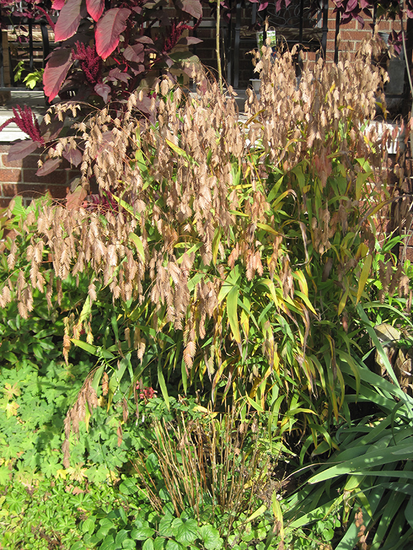 Northern Sea Oats is primarily grown for its highly ornamental fruit. It produces abundant clusters of purple hop-like fruit from late summer to late fall. It grassy leaves are light green in color. As an added bonus, the foliage turns a gorgeous coppery-bronze in the fall.