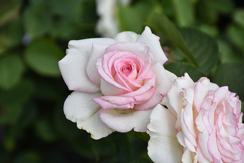 Moonstone Rose features showy lightly-scented fully double white flowers with pink edges at the ends of the branches from mid spring to mid fall. The flowers are excellent for cutting. It has dark green deciduous foliage which emerges burgundy in spring. The glossy oval compound leaves do not develop any appreciable fall color.