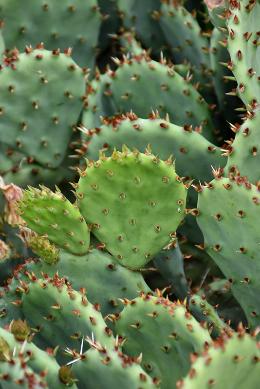 Prickly Pear Cactus is a small succulent evergreen plant with a spreading habit of growth that trails along the ground. As a type of cactus, it has no true foliage; the body of the plant is wholly comprised of a linked series of spiny light green pads which are connected together to form the branches of the plant.